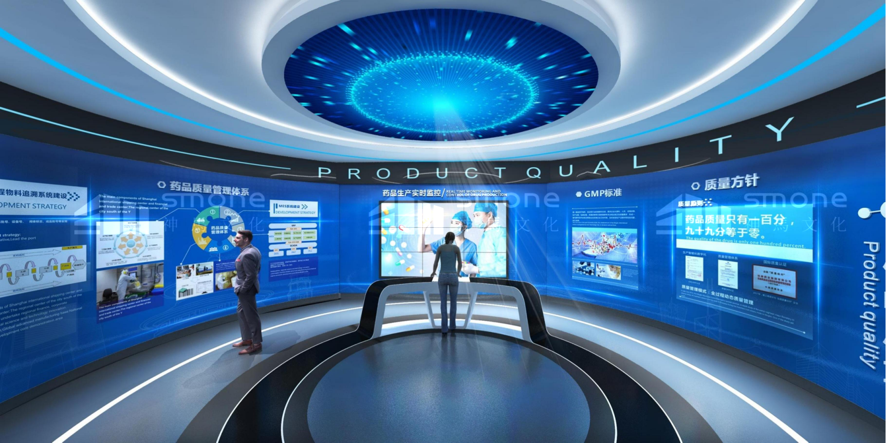 悅康藥業集團展廳位于北京市,總面積約 2000 平方米,采用智慧多媒體融合的現代科技風格,通過 L 幕投影、數字 LED 大屏等技術打造沉浸式體驗。展廳劃分為五大核心板塊:溯源發展初心、恪守質量信仰、解碼創新矩陣、展望數智未來、踐行社會責任,形成從企業根基到行業引領的完整敘事鏈條,成為展現醫藥全產業鏈創新實力的重要窗口。