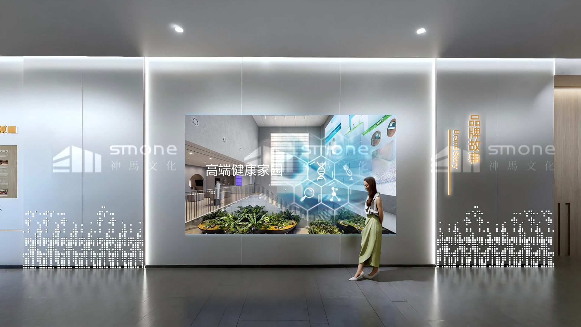 項目介紹 : 深圳奧薩醫(yī)藥有限公司展廳,以 “科技醫(yī)感 + 居家暖調(diào)” 為設(shè)計理念,構(gòu)建客戶 “認(rèn)知 - 體驗 - 信任 - 消費” 的閉環(huán)轉(zhuǎn)化路徑。