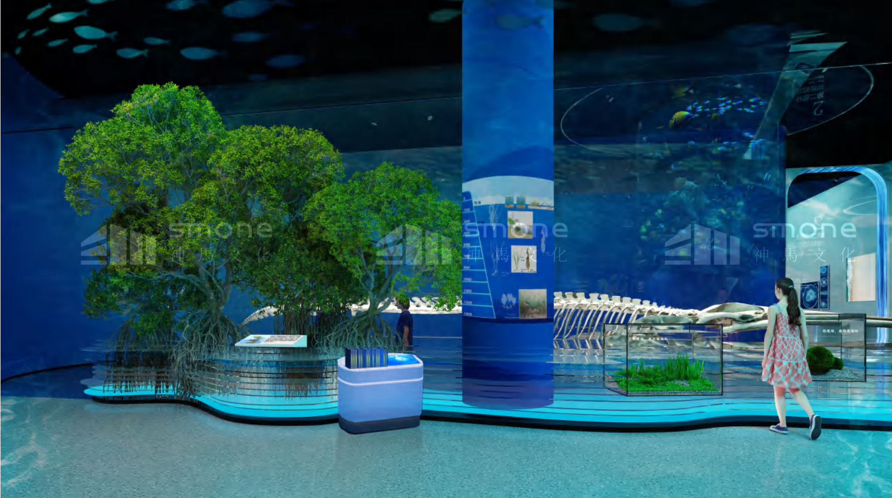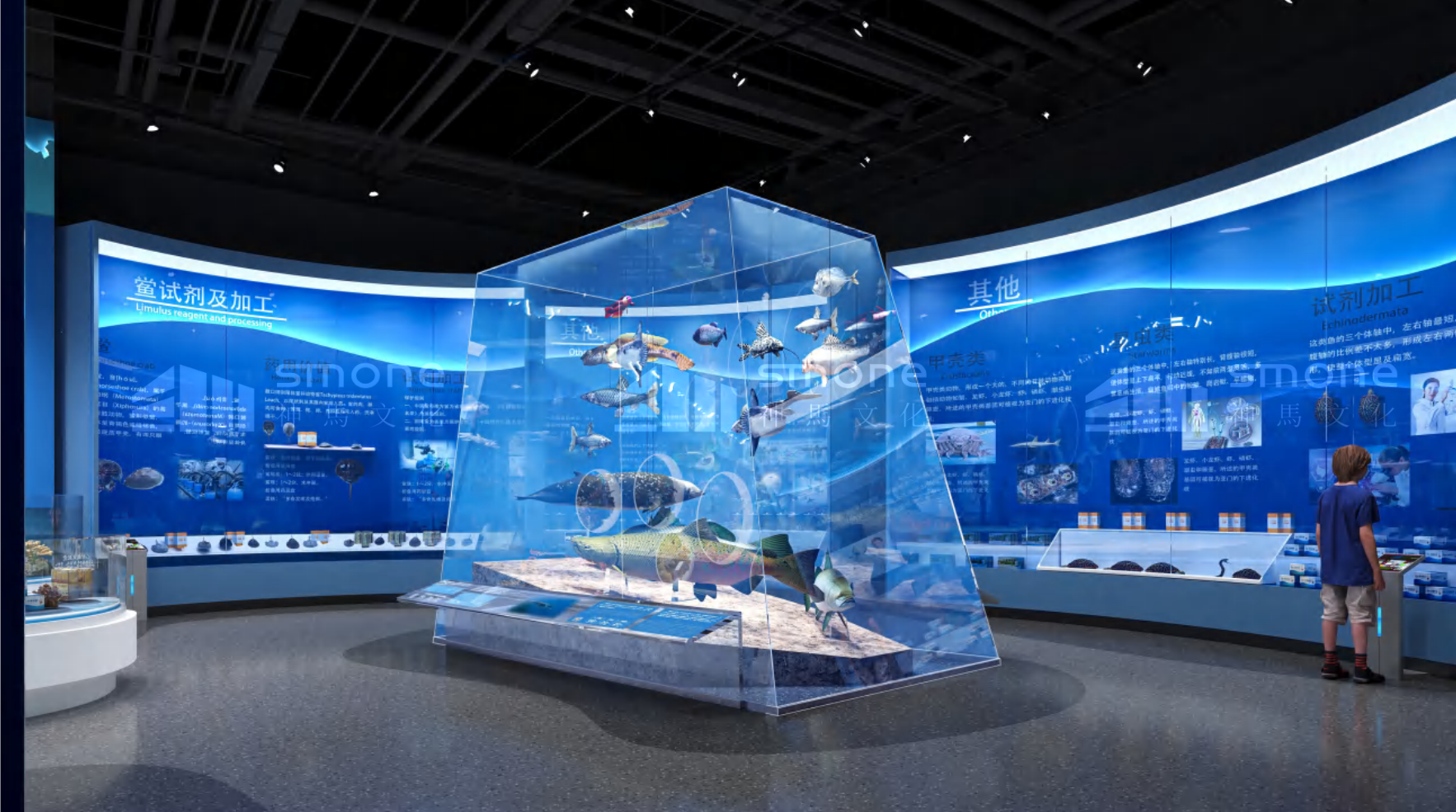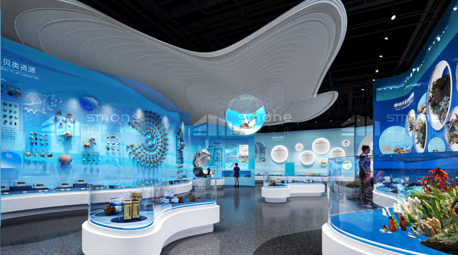 海洋中藥館位于廣西壯族自治區,總面積 625 平,采用海洋生態融合科技互動風格。展廳策劃分為三部分:典籍里的海洋本草、神秘的北部灣海洋中藥、出發 —— 從蔚藍到未來,通過海洋生態標本臺、場景復原等多元展陳手法,構建從文化溯源到創新發展的完整脈絡,成為展示海洋中藥獨特價值的重要窗口。