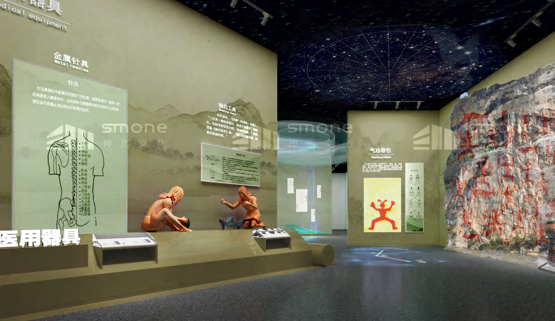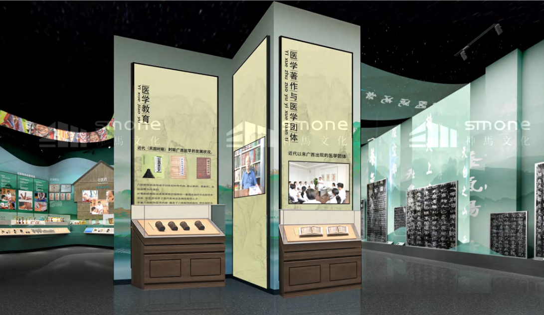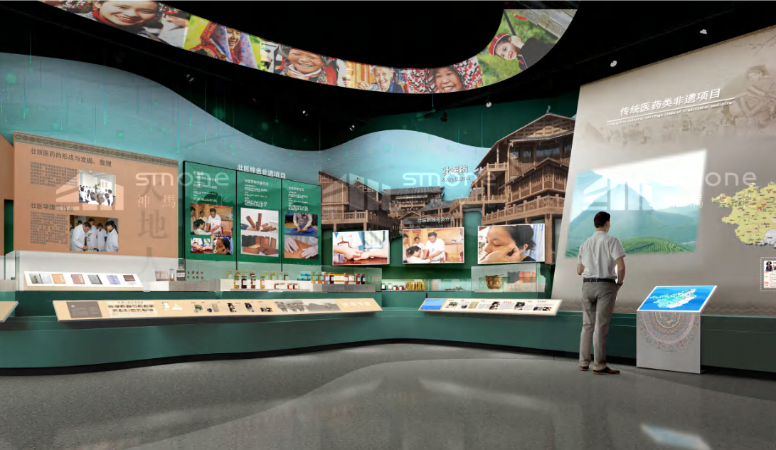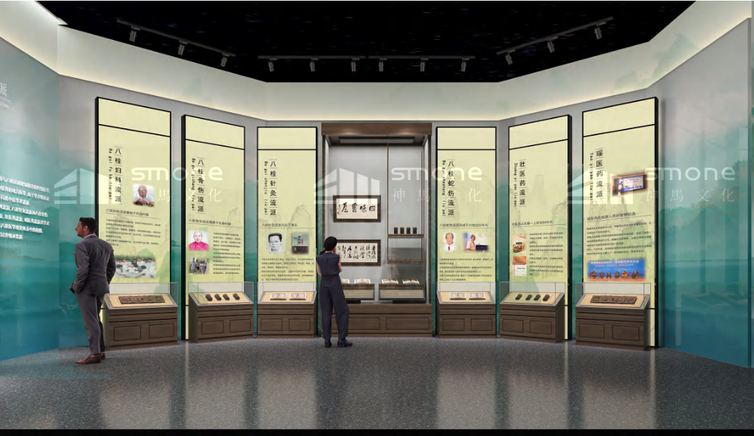 八桂醫學館位于廣西壯族自治區,總面積約 482 平,以 “和美南疆,積厚流光” 為設計理念。展廳策劃分為七部分:遠古先民醫藥濫觴、施針用藥經驗積累、醫學創建特色獨具、專著問世穩步發展、傳承創新百年興盛、民族醫韻共奏華章、靈山秀水福壽相伴,串聯起八桂醫學發展完整脈絡,成為展示廣西傳統醫藥文化底蘊的重要窗口。
